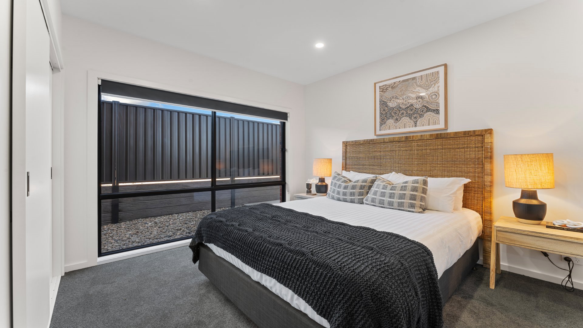 The spacious master bedroom awaits, complete with a king bed, walk-in robe, and a private ensuite. Access to yet another deck with a quaint sitting area allows you to enjoy more of the views on offer.