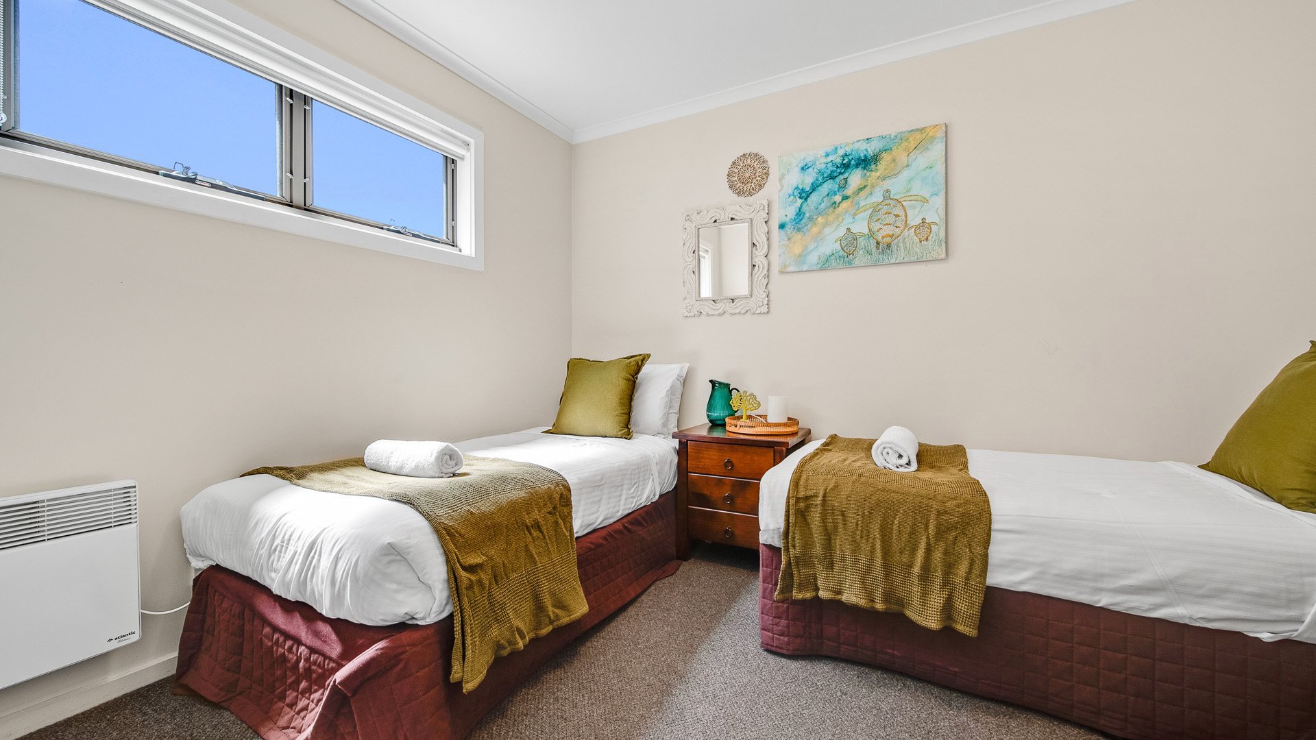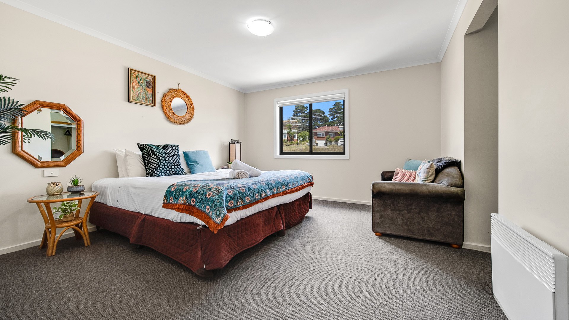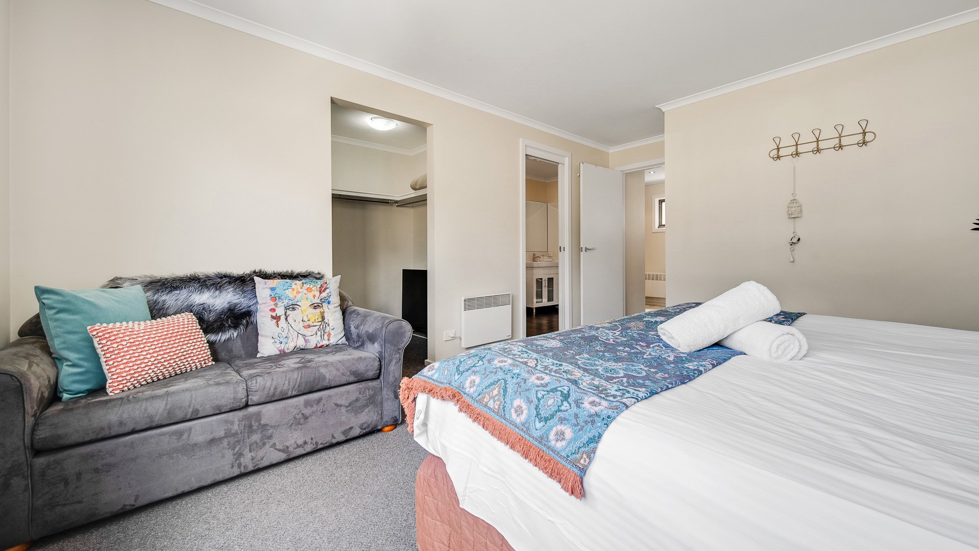 The living space has a large dining table big enough to fit the whole group and the wall mounted reverse cycle Air Conditioner will keep you comfortable all year round. The fully equipped kitchen has an electric oven and cooktop with microwave, dishwasher, and coffee machine and all the kitchen essentials you need.