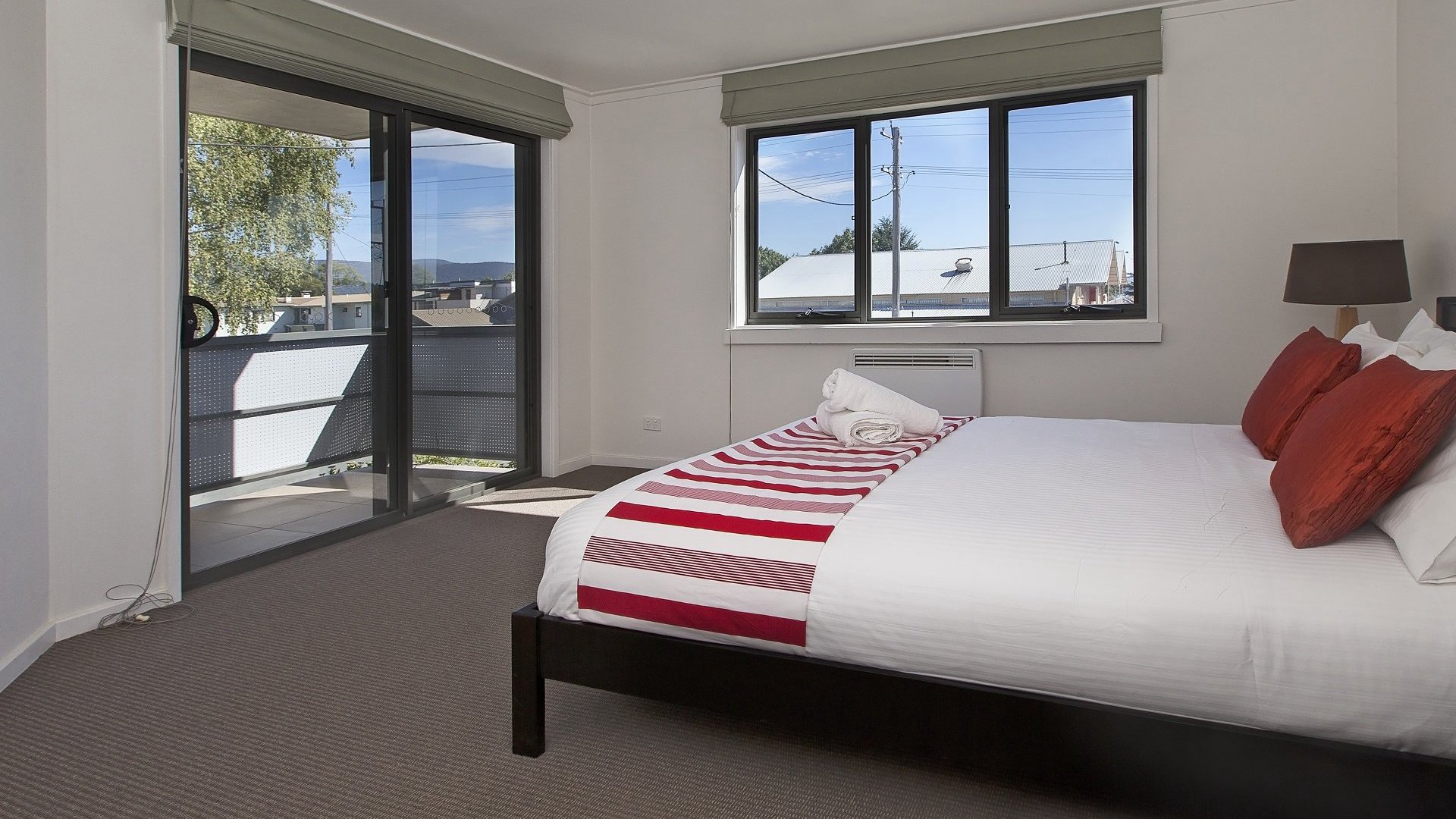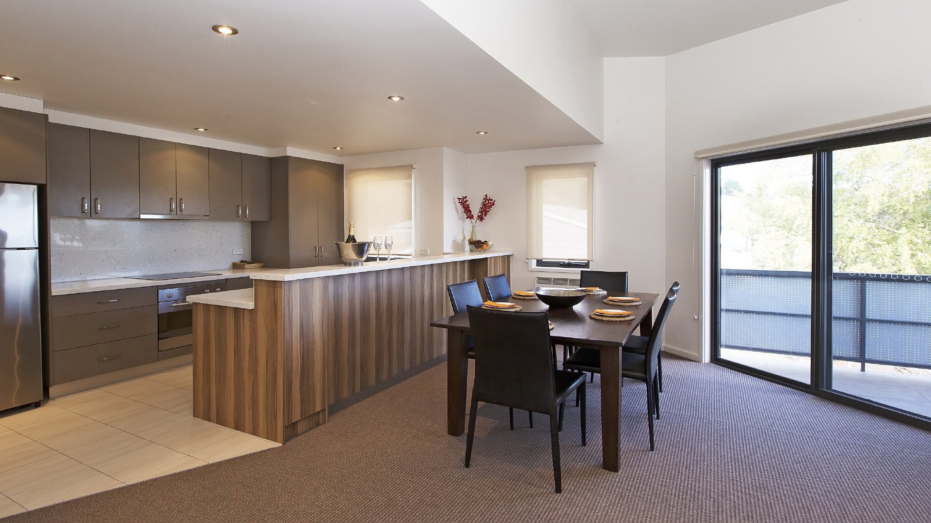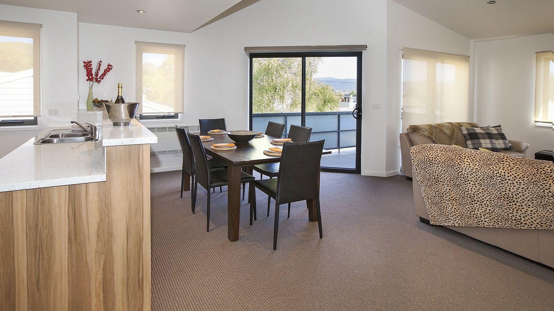 Boasting a spacious open plan living, dining, and kitchen area that opens onto a north-facing balcony, guests can indulge in picturesque lake views and bask in the natural light that floods the space.