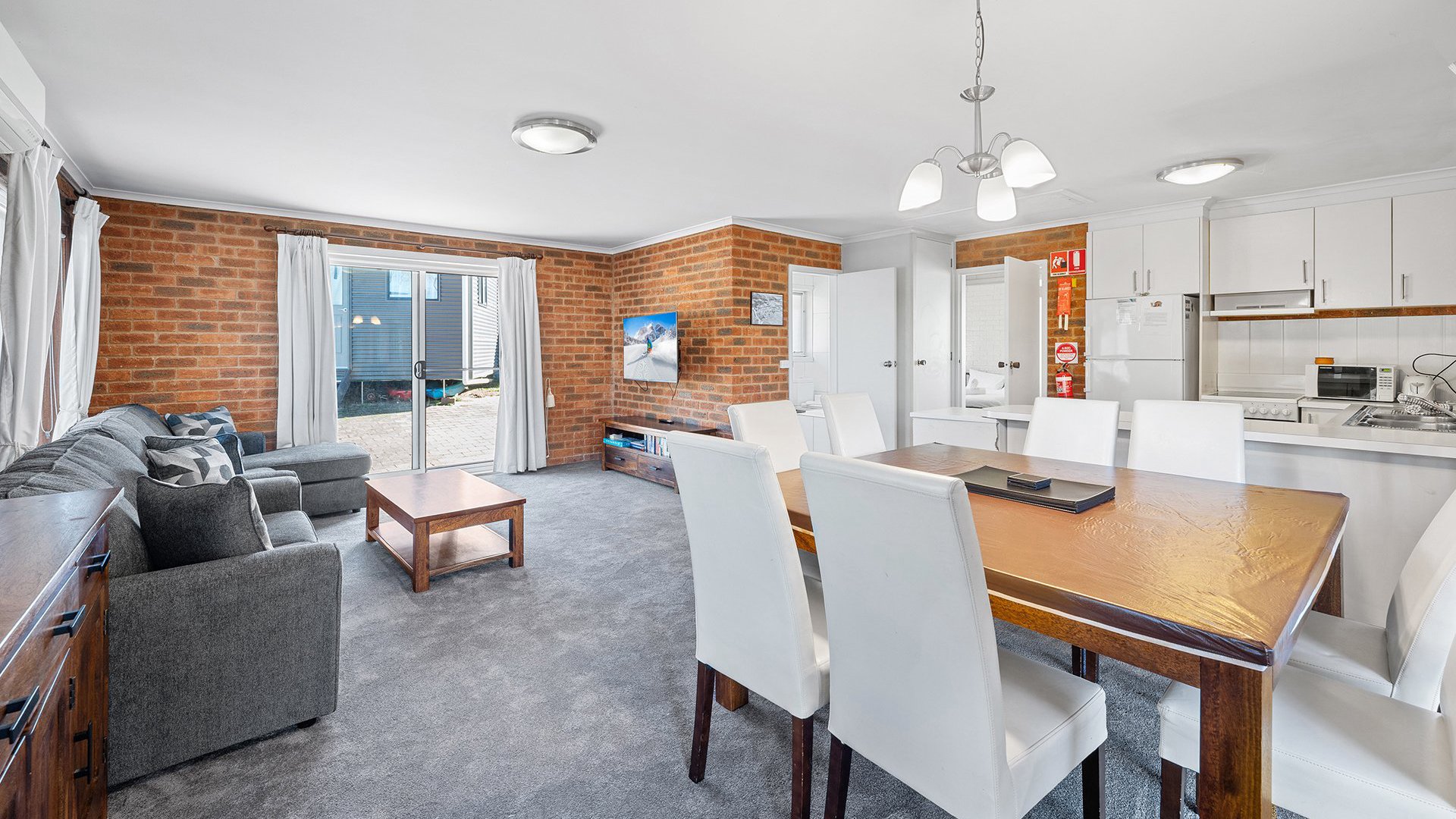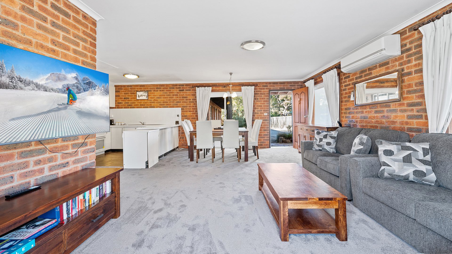 The spacious living area is very comfortable with a large flat screen TV, free WiFi and reverse cycle air-conditioning for heating in Winter and cooling in Summer. The kitchen is well equipped with electric cooking, fridge, microwave, dishwasher and there is a large dining table for every one to comfortably sit around.
