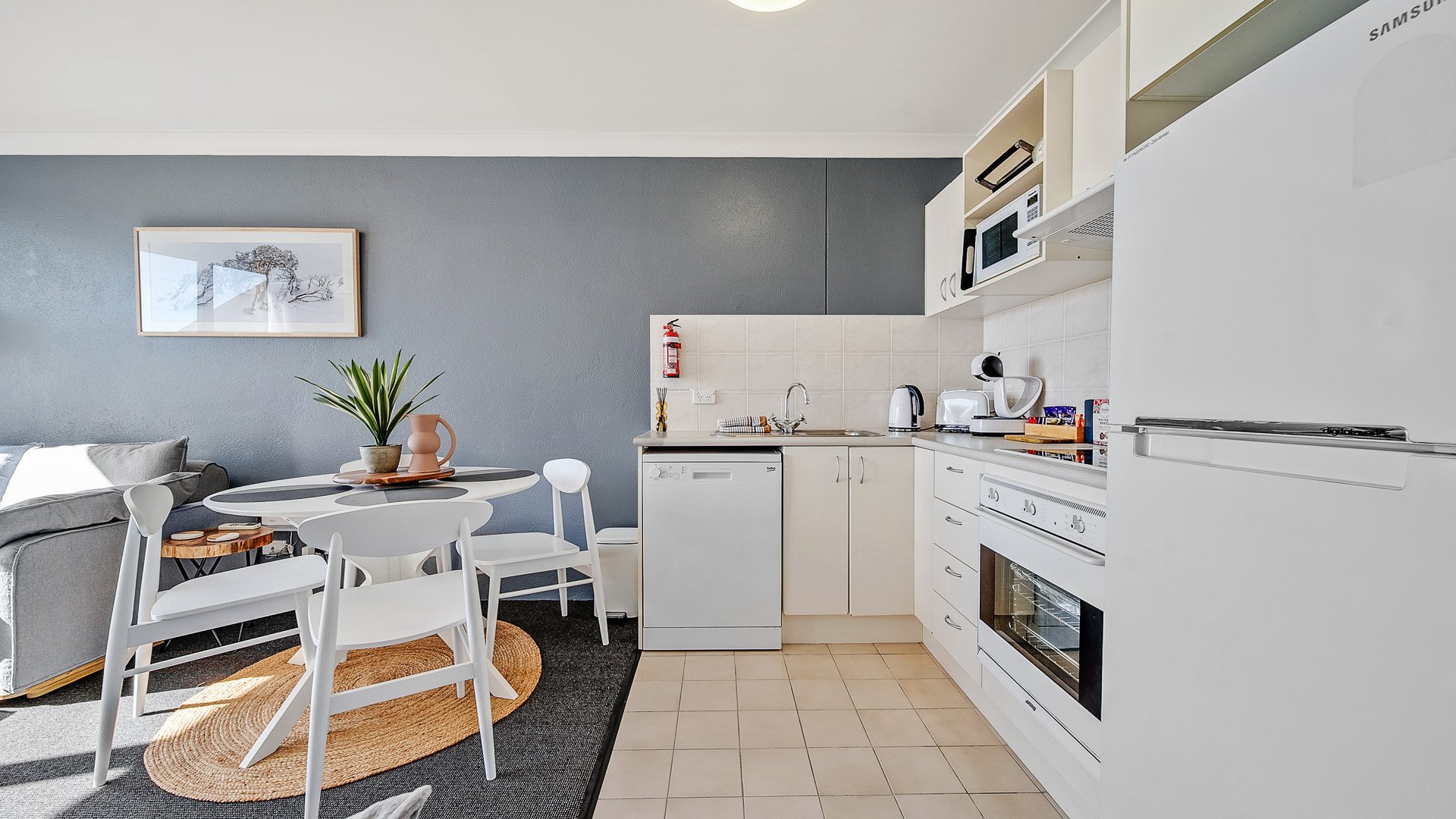 Designed to accommodate up to four guests, the apartment features a cosy bedroom alcove and a high-quality Koala sofa bed, ensuring everyone gets a restful night's sleep. The fully equipped kitchen, complete with a dishwasher, makes self-catering a breeze, while the bathroom includes laundry facilities for added convenience. Reverse-cycle air conditioning keeps the space comfortable year-round, and in winter, you’ll appreciate the added warmth of a heated towel rail and a boot/glove warmer—perfect after a day on the snow.