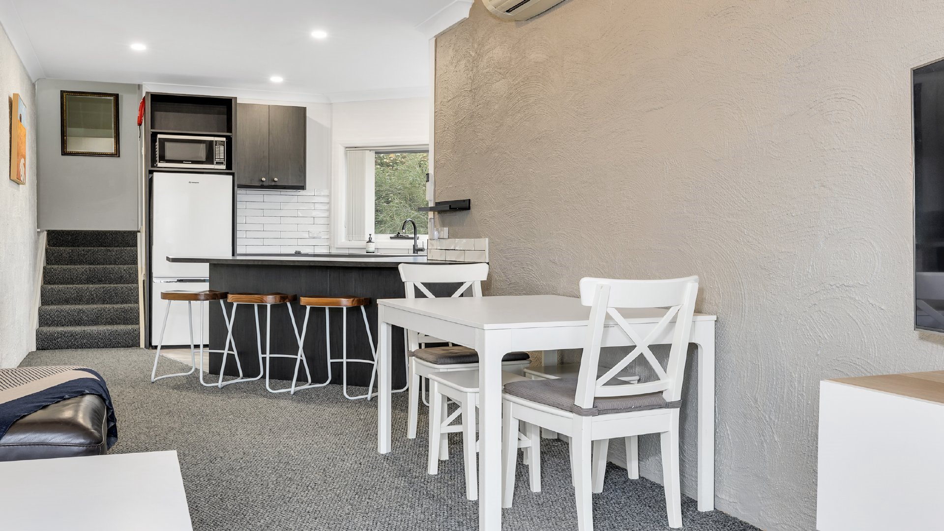 On the first level, you'll find a spacious open-plan living and dining area, featuring reverse cycle air conditioning for year-round comfort. Relax with the Smart TV or prepare meals in the brand-new, fully equipped kitchen, ideal for entertaining family and friends. Step out onto the private balcony, complete with a Weber BBQ—perfect for summer dining while taking in the scenic mountain views.