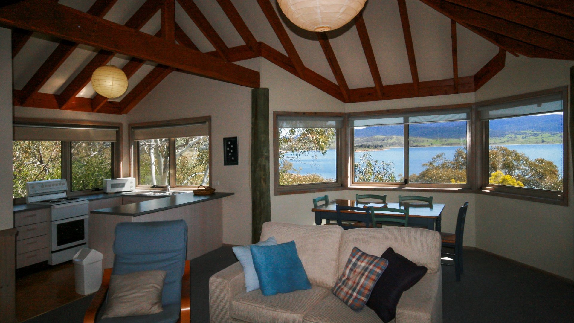 Snowgums on the Lake has 4 bedrooms, 2 bathrooms (including laundry facilities in each) 2 kitchens, 2 living areas, and a large balcony overlooking the lake.T his home-away from home is only 5 minutes drive from the main shops of Jindabyne and another 30 minutes drive to Perisher or Thredbo.