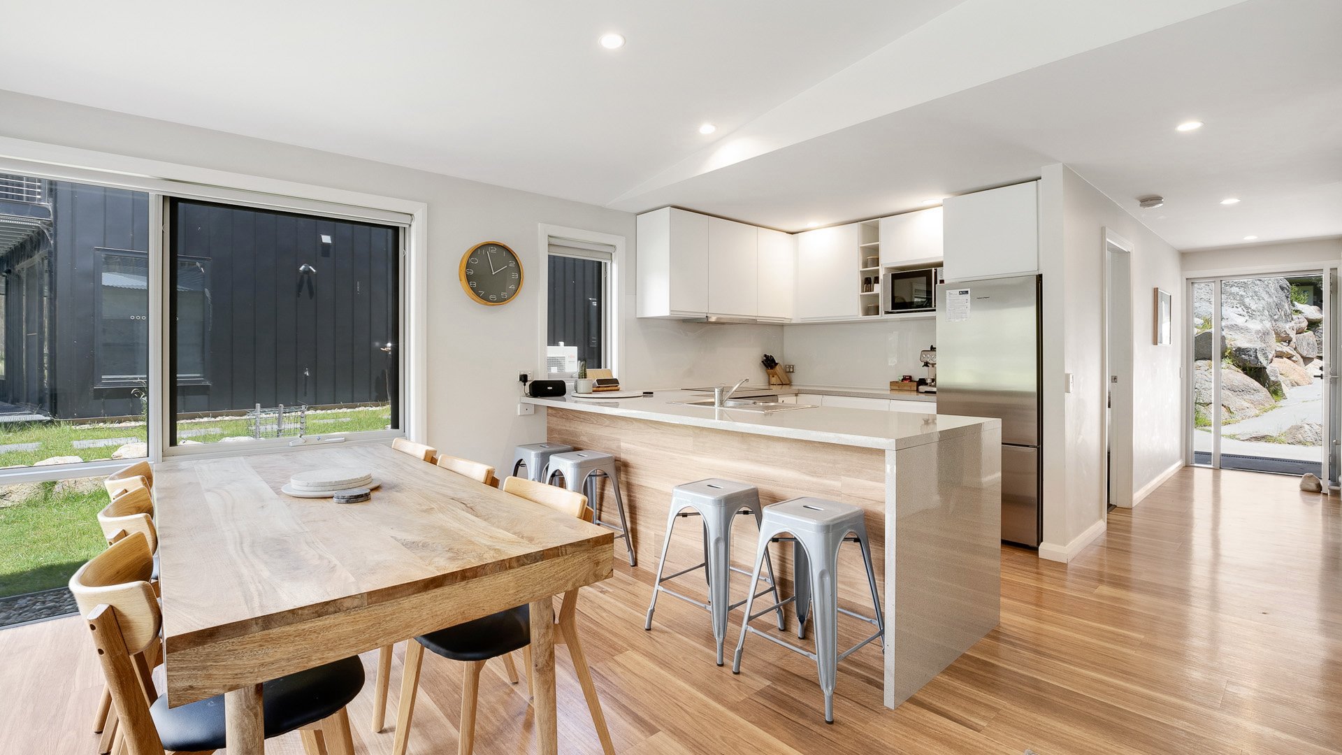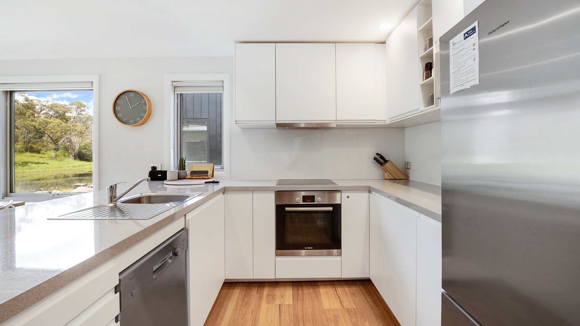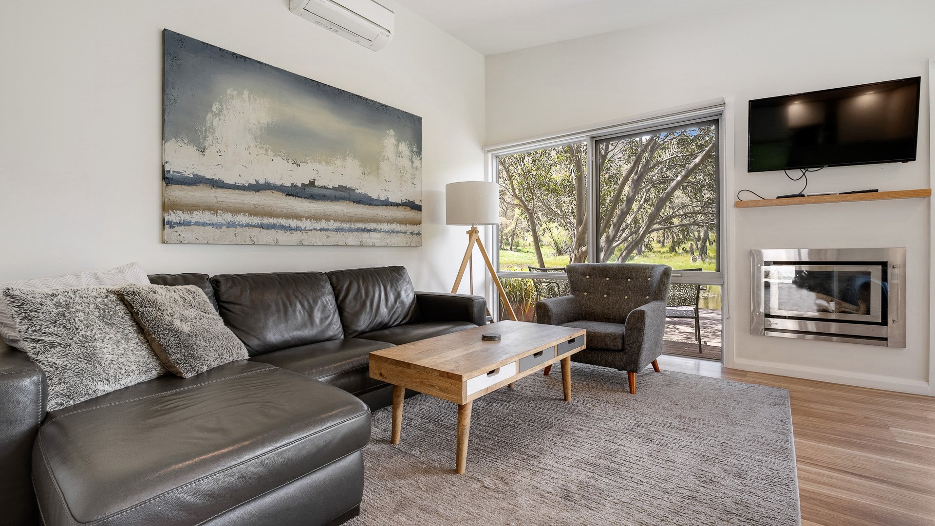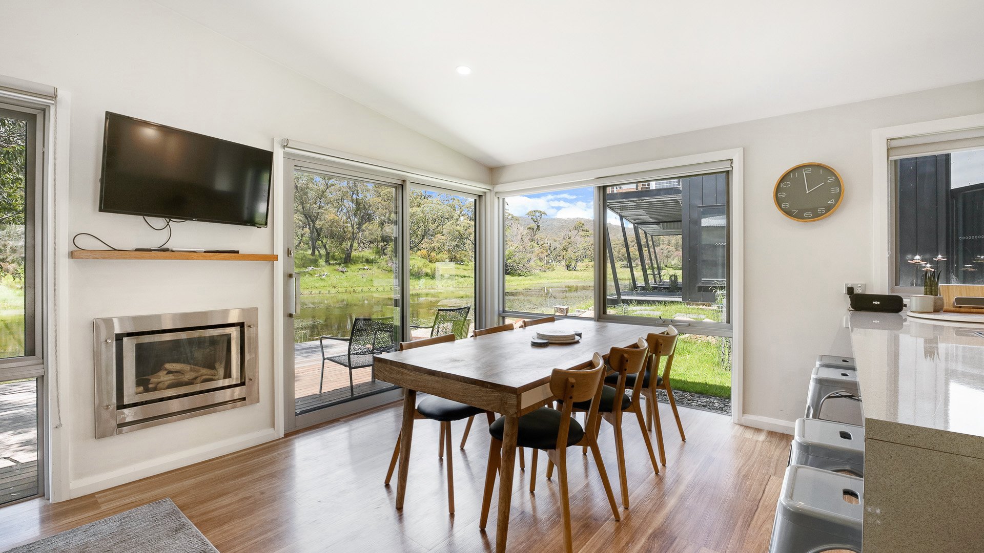 Throughout winter guests can relax by the gas fireplace after a day on the slopes, while during the warmer months they can enjoy their surrounds from the deck overlooking the water.