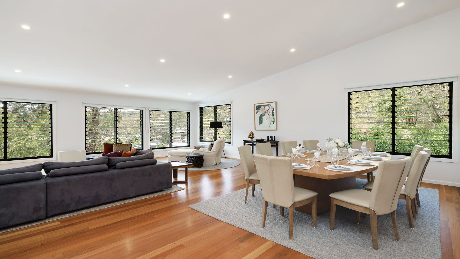 - Large light filled, open plan living with large dining table to seat 10 along with a second lounge room with Apple TV and theatre system.