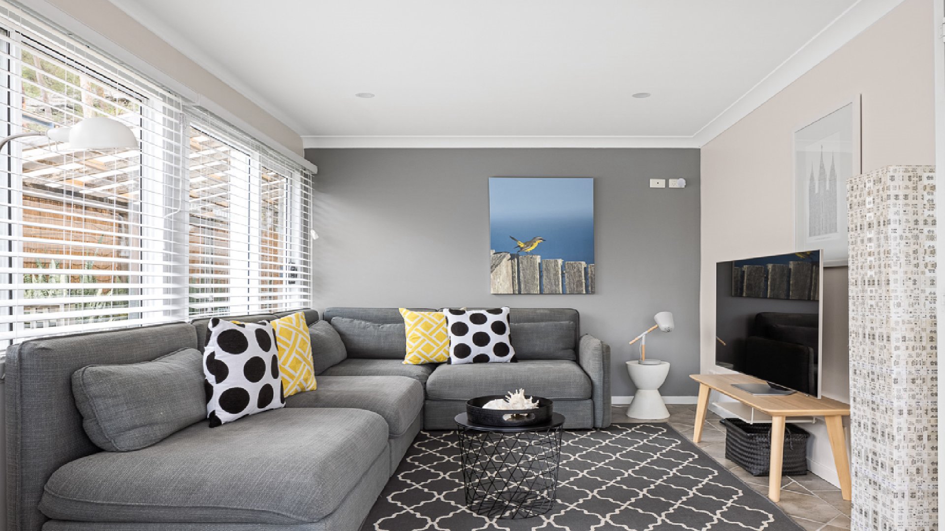 - Light-filled sunroom complete with a 55' Samsung Smart TV and a large modular lounge - perfect for relaxing.